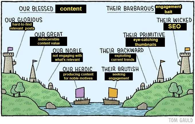 Eventually, having to understand how to navigate the “attention economy” is unfortunate but necessary. If you have content you want seen, you have to work to present it in a way that makes people want to engage with it more than other content out there. “Hate the game, not the player” and so on. ↩